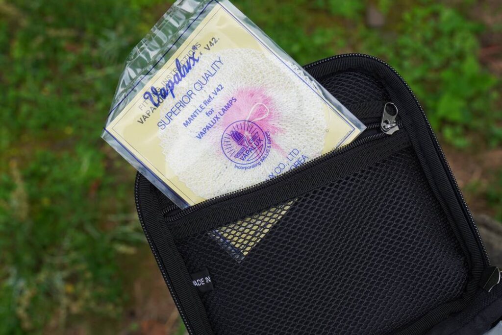 蓋にメッシュポケットがデザインされており、予備のマントルやメンテナンス道具の収納が可能。