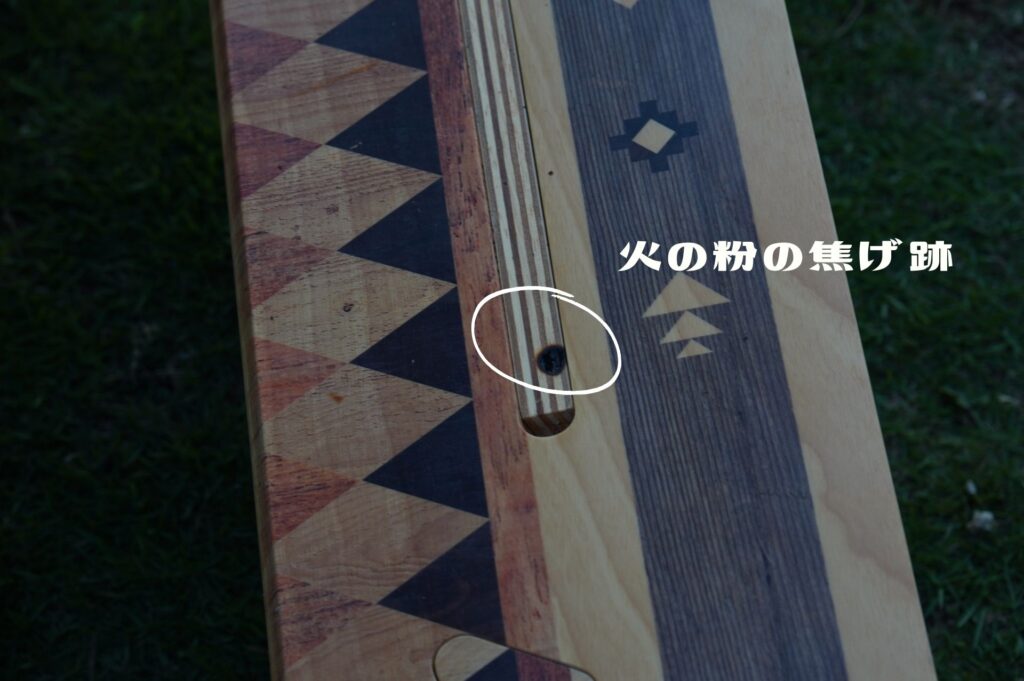 木製である以上火の粉がついて、焦げ付くリスクは常にあります。